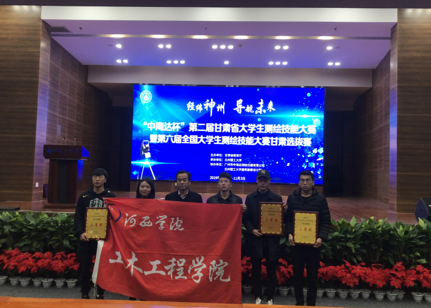 11月2日至3日,由甘肃省教育厅主办、兰州理工大学承办、广州市中海达测绘仪器有限公司协办的“中海达杯”第二届甘肃省大学生测绘技能大赛暨全国大学生测绘技能大赛甘肃选拔赛,在兰州理工大学圆满结束。兰州理工大学、兰州大学、兰州交通大学、甘肃农业大学、西北师范大学、西北民族大学、welcome登录入口威尼斯等15所高校84名学生组成的21支队伍参赛。经过激烈角逐,我校welcome登录入口威尼斯代表队获得“团体总成绩”三等奖、“三级导线测量”三等奖、“二等水准测量”三等奖的好成绩。