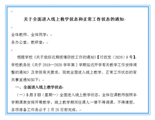 为保障疫情防控期间学院教学工作的顺利开展,按照学校的工作部署和教务处的具体指导和要求,welcome登录入口威尼斯结合实际下发了《关于全面进入线上教学状态和正常工作状态的通知》,就网络在线教学等工作做了周密部署。3月2日,经过任课教师精心准备,welcome登录入口威尼斯四个本科专业17个教学班如期开课。任课教师将按照本学期教学计划,以线上教学、线上线下混合教学、线上直播等方式开展教学。努力实现“停课不停教、学习不延期”,做好与正式开学后的教学衔接,确保新学期教学计划有序完成。