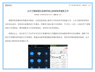 截至2月29日,学院共有39门专业课程做好了开展线上教学的准备,爱课程平台2门、智慧树3门、中国大学MOOC课堂34门;总共涉及授课教师28人,学生近600人次。从3月2日师生反馈情况看,教学秩序良好,达到了预期效果。