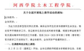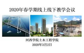 根据学校的统一安排,welcome登录入口威尼斯党政组织精心谋划、认真安排各项教学工作。1月26日印发了《关于切实做好预防新型冠状病毒工作的紧急通知》。1月31日,印发了《给全体同学及家长的一封信》,强调“延迟开学是机遇更是挑战。延迟开学,给同学们给予更多地自主学习的时间、复习巩固知识的时间。学院衷心希望同学们抢抓机遇,充分利用“学习强国”(PC版)之慕课学习栏目,认真学习高数数学等学科基础课程及理论力学、结构力学等专业基础课程以及工程项目管理、建筑工程施工技术等专业核心课程,为开学后更好地学习奠定坚实基础”。2月23日印发了《关于全面进入线上教学状态和正常工作状态的通知》,就网络在线教学等工作做了部署,并于次日召开了全院教职工视频会议。至3月2日,经过任课教师精心准备,学院四个本科专业17个教学班如期开课。